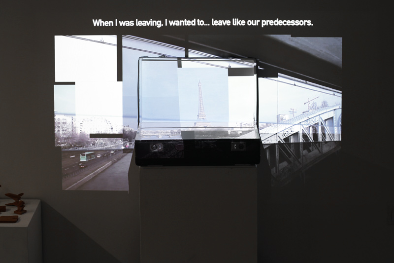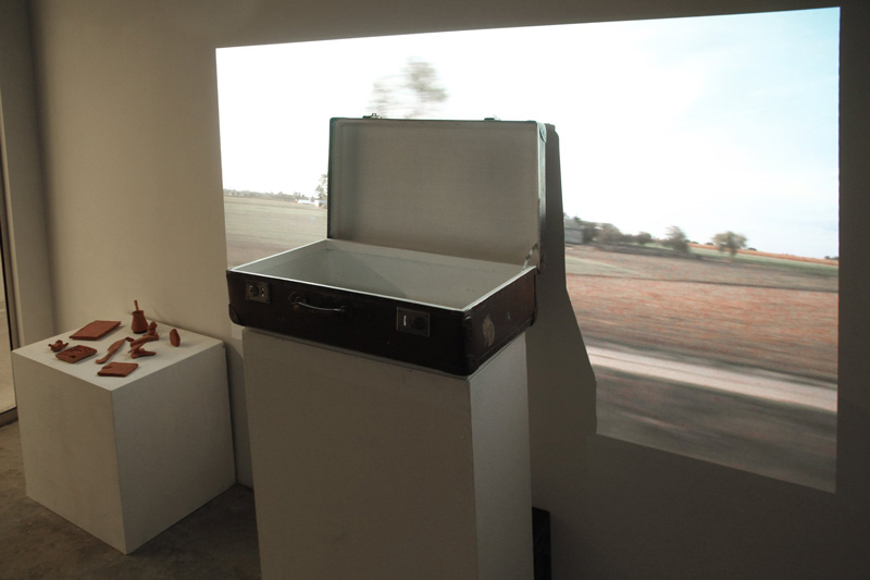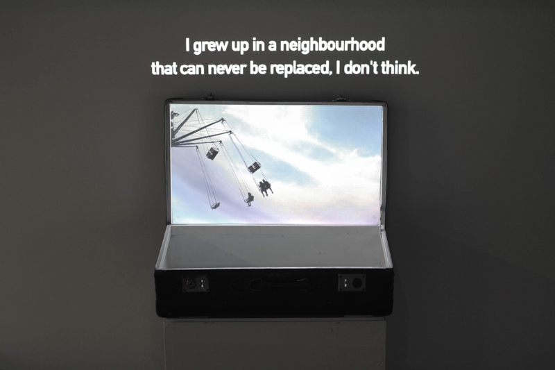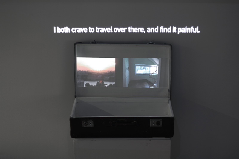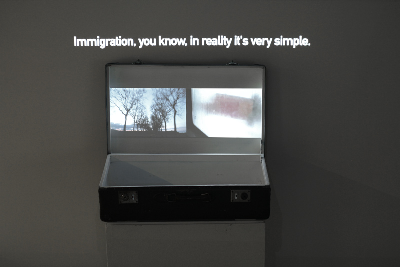 Whenever I arrived to interview installation participants, I brought the suitcase along, asking them to momentarily place an object they found significant to their migration journey inside it. Filming us as we engaged in this “staged encounter,” I also asked participants to describe the significance of their chosen object, later editing these conversations into short vignettes.