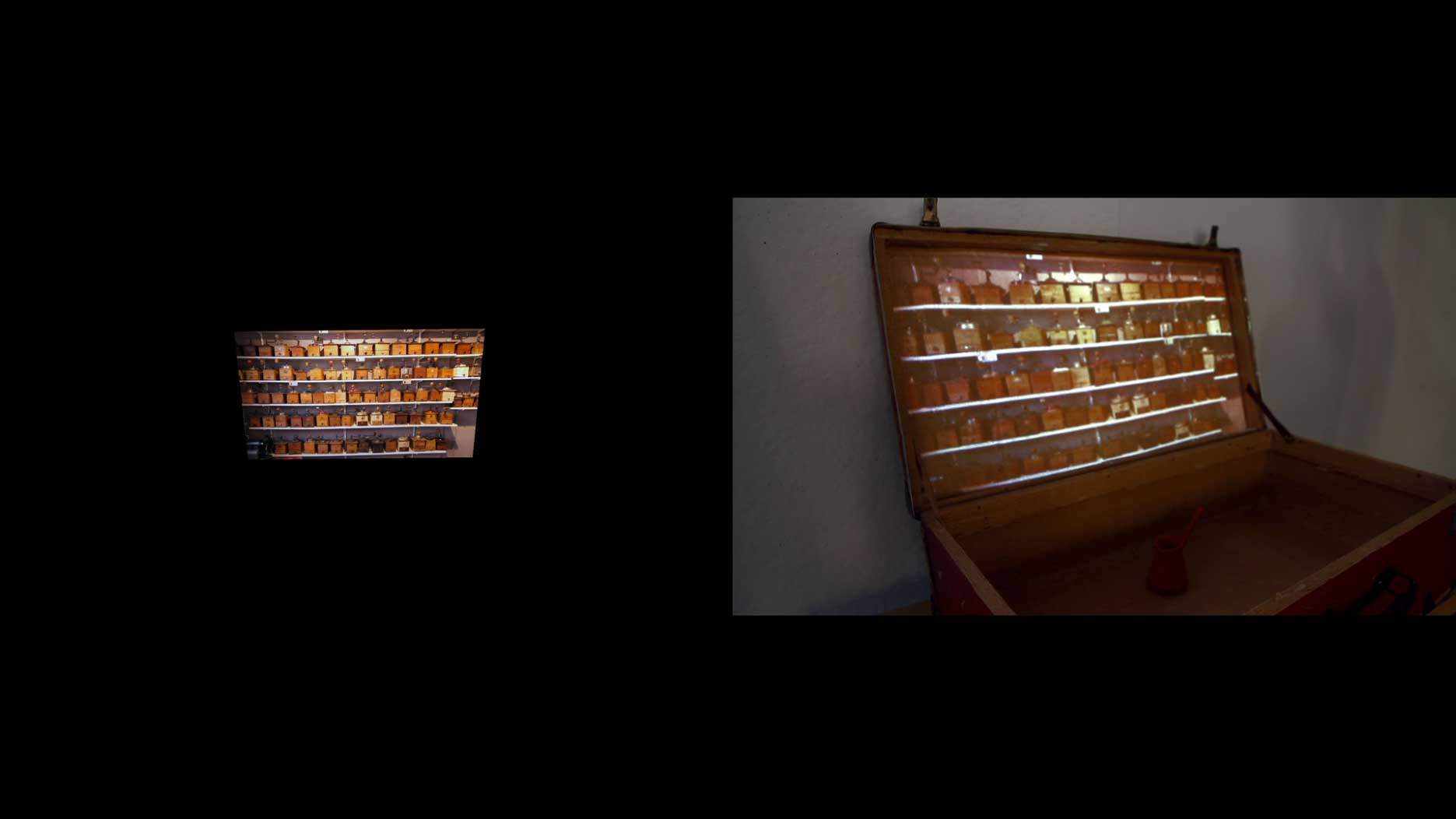 Still Life with a Suitcase is an interactive video installation. It is based on forty-five interviews with Russian transnational migrants conducted in Moscow, Paris, Berlin and New York. The installation is set up on multiple projection surfaces: a video plays on a screen and it is simultaneously video-mapped onto a suitcase, which stands in front of the screen. This suitcase is a family heirloom that lay dormant under the bed of our Moscow apartment for the last 40 years. Since I began the installation project, I have been traveling with it, first using it to transport all my film equipment during production of the installation, and now, carrying all the projection and electronic equipment needed to exhibit it.